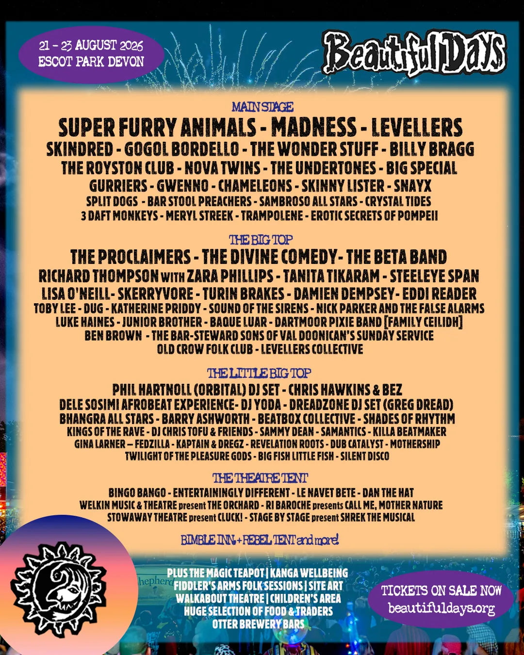 Please do read the Festival Terms and Conditions before ordering & order carefully as Beautiful Days tickets are not refundable or exchangeable.